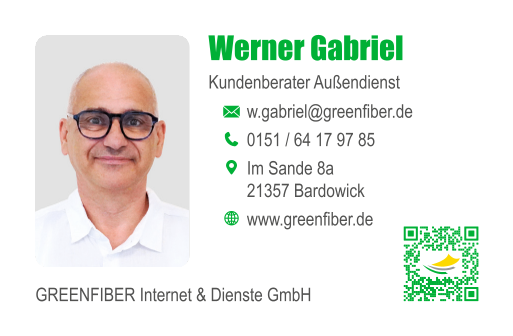 Im Büro Im Sande 8A 21357 Bardowick stehen Ihnen Herr Werner Gabriel Tel.: +49 1516 4179785, w.gabriel@greenfiber.de und